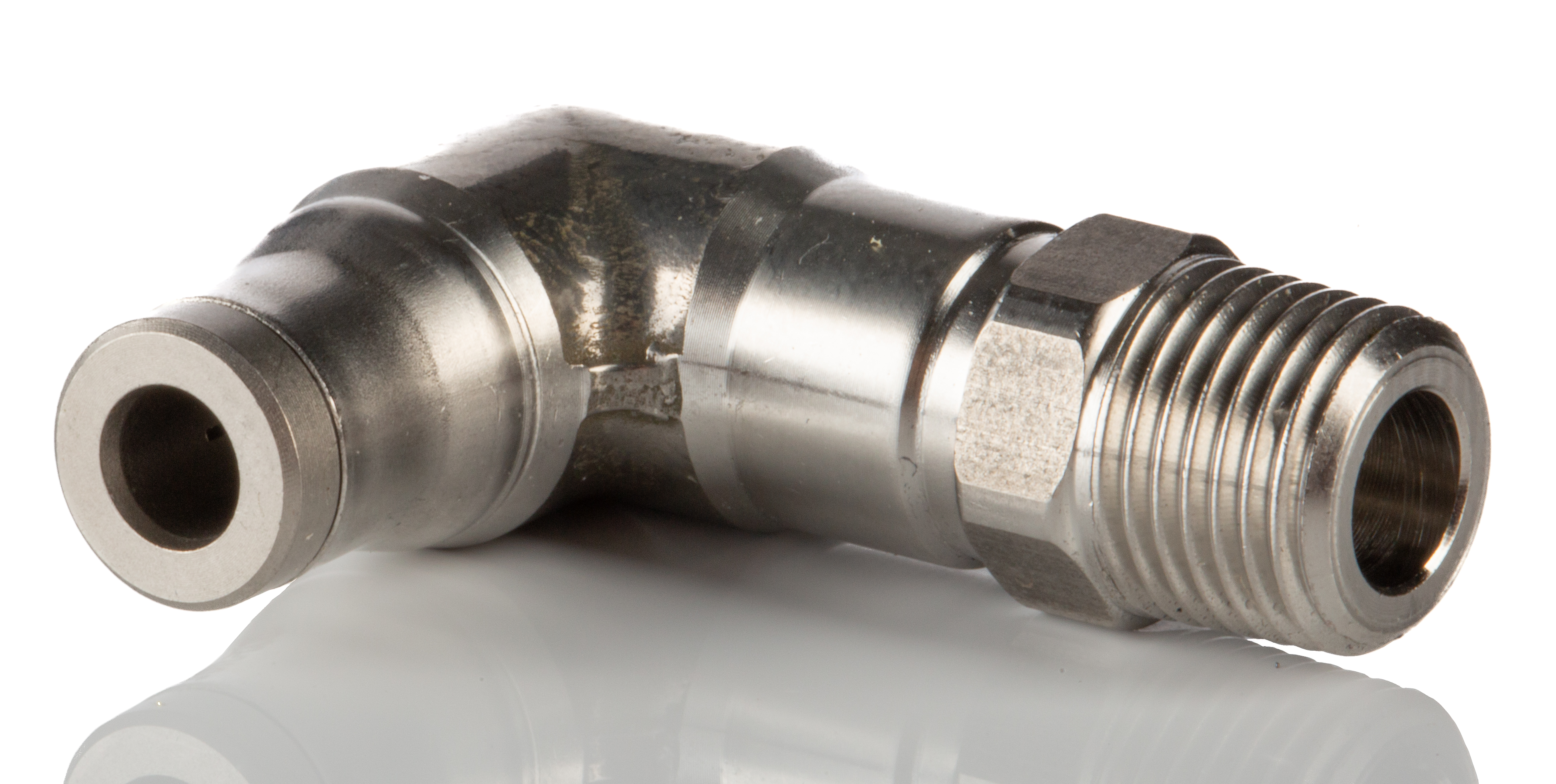 This is Male Stud Elbow R 1/8 Male Push In 4 mm manufactured by Legris. The manufacturer part number is 3809 04 10. It has a 90° angle . It features 20 bar maximum operating pressure. The product is available in inline configuration. While the connector B is push in 4 mm. Whereas, the minimum operating temperature of the product is -15°c. The connector A is r 1/8 male connector. The threaded connection is r 1/8 male. The product has a threaded-to-tube style. The product's body is nicely designed from stainless steel materials. The product has a lf3800 manufacturer series. The pneumatic fitting is a elbow threaded adaptor. It has a maximum operating temperature of +110°c. It includes a swivel connection .