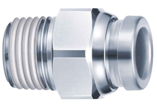This is Connector R 1/8 Male Push In 8 mm manufactured by SMC. The manufacturer part number is KQB2H08-01S. A quality product with a nice nickel plated finish. It features 1 mpa maximum operating pressure. The product is available in inline configuration. While the connector B is push in 8 mm. The connector A is r 1/8 male connector. Moreover, its thread is made up of nickel plated brass material . The threaded connection is r 1/8 male. The product has a threaded-to-tube style. The product's body is nicely designed from nickel plated brass materials. The product has a kqb2 manufacturer series. Whereas, the minimum operating temperature of the product is -5°c. The pneumatic fitting is a straight threaded adaptor. It has a maximum operating temperature of +150°c.
