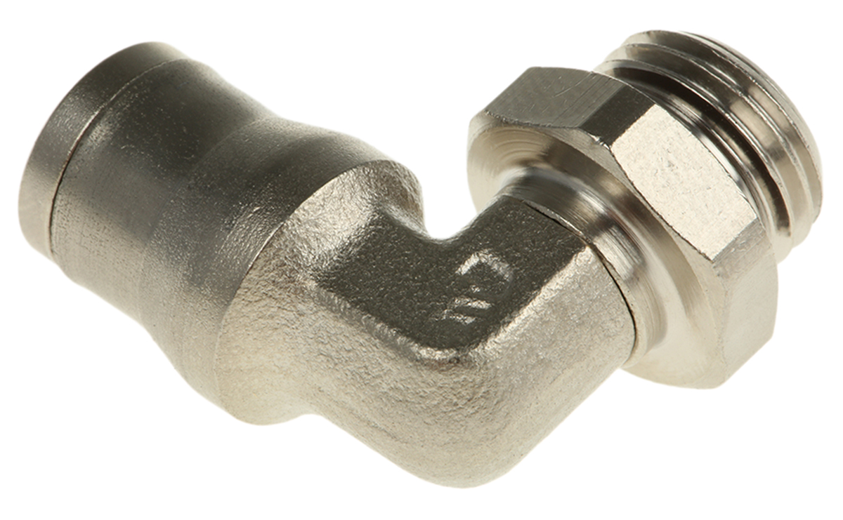 This is Male Stud Elbow G 1/4 Male Push In 8 mm manufactured by Legris. The manufacturer part number is 3699 08 13. It has a 90° angle . It features 20 bar maximum operating pressure. The product is available in inline configuration. While the connector B is push in 8 mm. Whereas, the minimum operating temperature of the product is -20°c. The connector A is g 1/4 male connector. Moreover, its thread is made up of nickel plated brass material . The threaded connection is g 1/4 male. The product has a threaded-to-tube style. The product's body is nicely designed from nickel plated brass materials. The product has a lf3600 manufacturer series. The pneumatic fitting is a elbow threaded adaptor. It has a maximum operating temperature of +120°c. It includes a swivel connection .