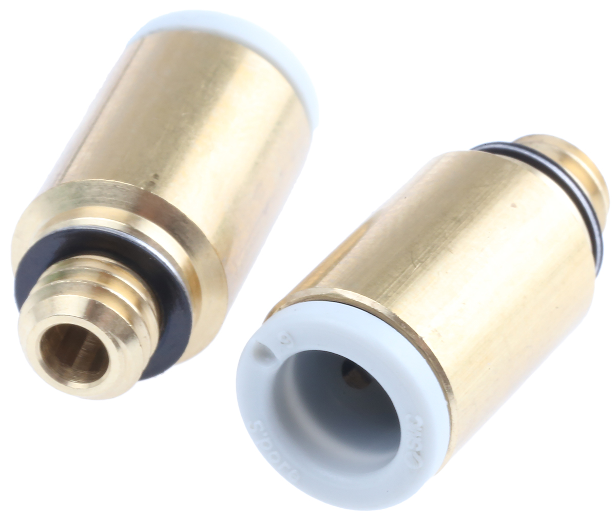 This is Pneumatic Straight Threaded-to-Tube Adapter M6 x 1 Male Push In 6 mm manufactured by SMC. The manufacturer part number is KQ2S06-M6A. The product is available in inline configuration. While the connector B is push in 6 mm. The connector A is m6 male connector. Moreover, its thread is made up of brass material . The threaded connection is m6 x 1 male. The product has a threaded-to-tube style. The product's body is nicely designed from brass materials. The product has a kq2 manufacturer series. Whereas, the minimum operating temperature of the product is -5°c. The pneumatic fitting is a straight threaded adaptor. It has a maximum operating temperature of +60°c.