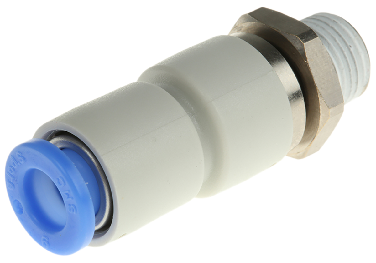 This is Pneumatic Straight Threaded-to-Tube Adapter R 1/8 Male Push In 6 mm manufactured by SMC. The manufacturer part number is KSH06-01S. It features 1 mpa maximum operating pressure. The connector A is r 1/8 connector. Moreover, its thread is made up of brass material . The product's body is nicely designed from brass materials. The product has a threaded-to-tube style. The threaded connection is r 1/8 male. The product has a ks manufacturer series. Whereas, the minimum operating temperature of the product is 0°c. It has a maximum operating temperature of +60°c.