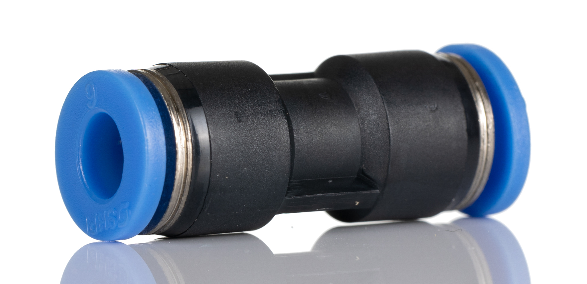 This is Straight Union Push In 4 mm manufactured by RS Pro. The manufacturer part number is 916-0870. A quality product with a nice nickel plated finish. It features 10 bar maximum operating pressure. While the connector B is push in 4 mm. The connector A is push in 4 mm connector. The pneumatic fitting is a straight tube-to-tube adaptor. The product's body is nicely designed from polyoxymethylene materials. Whereas, the minimum operating temperature of the product is 0°c. The product has a tube-to-tube style. It has a maximum operating temperature of +60°c.