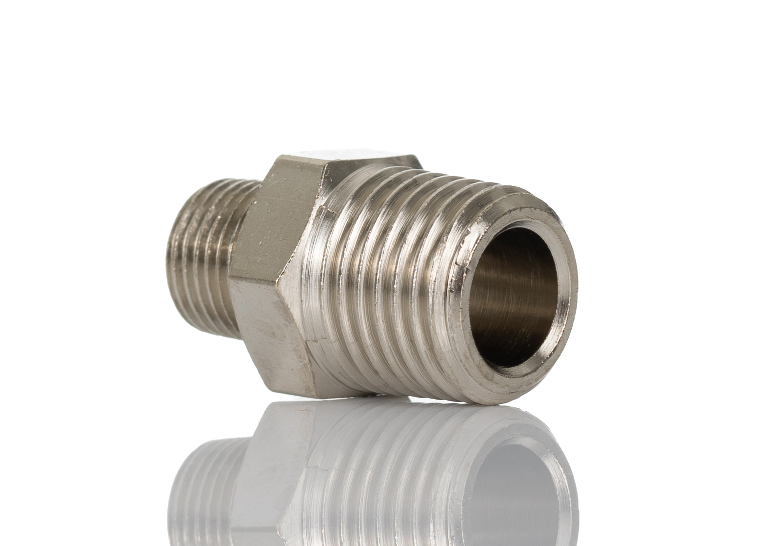 This is 0900 20 bar Brass Pneumatic Straight Threaded Adapter R 1/8 Male Male R R Male 1/8in 1/4in manufactured by Legris. The manufacturer part number is 0900 10 13. Whereas, the minimum operating temperature of the product is -20°c. It features 20 bar maximum operating pressure. While the connector B is r 1/4 male. The connector A is r 1/8 male connector. The product has a threaded style. The product's body is nicely designed from brass materials. The product has a lf3000 manufacturer series. The pneumatic fitting is a straight threaded adaptor. It has a maximum operating temperature of +120°c.