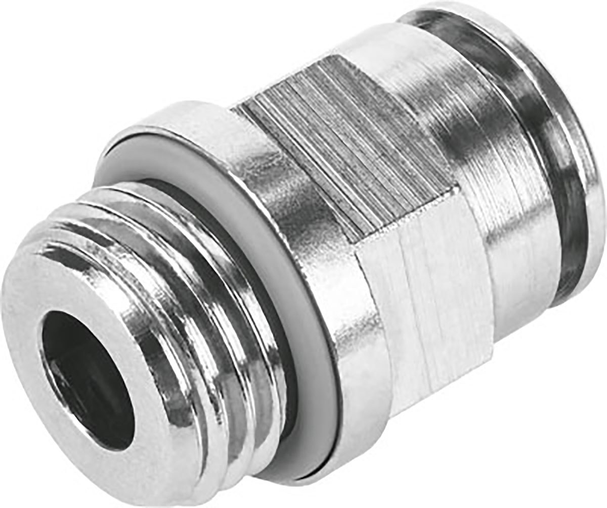 This is Pneumatic Straight Threaded-to-Tube Adapter G 1/4 Male to Push In 10 mm manufactured by Festo. The manufacturer part number is NPQH-D-G14-Q10-P10. It features 20 bar maximum operating pressure. A quality product with a nice nickel plated finish. The connector A is g 1/4 male connector. The product complies with all safety standards, such as ansi/nsf 51, fda 21 cfr 177.1595, fda 21 cfr 177.2600, nsf h1 reg. no. 128787. The product is available in inline configuration. While the connector B is push in 10 mm. Moreover, its thread is made up of brass material . It is designed for food grade yes . While it has 578343 of model number. The product has a threaded-to-tube style. The product's body is nicely designed from brass materials. The product has a npqh manufacturer series. Whereas, the minimum operating temperature of the product is 0°c. It is resistant to chemical yes . The pneumatic fitting is a straight threaded adaptor. It has a maximum operating temperature of +150°c.