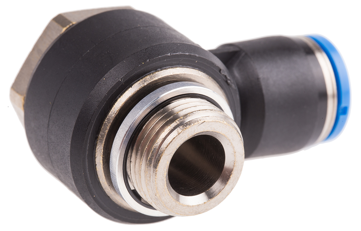 This is Pneumatic Elbow Threaded-to-Tube Adapter G 3/8 Male Push In 10 mm 10mm Tube Connection manufactured by Festo. The manufacturer part number is QSLV-G3/8-10. It is designed for food grade no . It has a 90° angle . It features 14 bar maximum operating pressure. The product is available in inline configuration. While the connector B is push in 10 mm. Moreover, its thread is made up of nickel plated brass material . Whereas, the minimum operating temperature of the product is -10°c. The connector A is g 3/8 male connector. While it has 186144 of model number. The threaded connection is g 3/8 male. The product has a threaded-to-tube style. The product's body is nicely designed from pbt materials. The product has a qs manufacturer series. It is resistant to chemical no . The pneumatic fitting is a elbow threaded adaptor. It has a maximum operating temperature of +80°c. It includes a swivel connection .