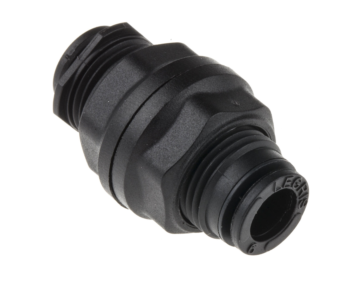 This is Pneumatic Bulkhead Tube-to-Tube Adapter Straight Push In 6 mm to Push In 6 mm manufactured by Legris. The manufacturer part number is 3116 06 00. A quality product with a nice nickel plated finish. Whereas, the minimum operating temperature of the product is -20°c. It features 20 bar maximum operating pressure. While the connector B is push in 6 mm. The connector A is push in 6 mm connector. The product has a tube-to-tube style. The product has a lf3000 manufacturer series. The pneumatic fitting is a bulkhead tube-to-tube adaptor. It has a maximum operating temperature of +80°c.
