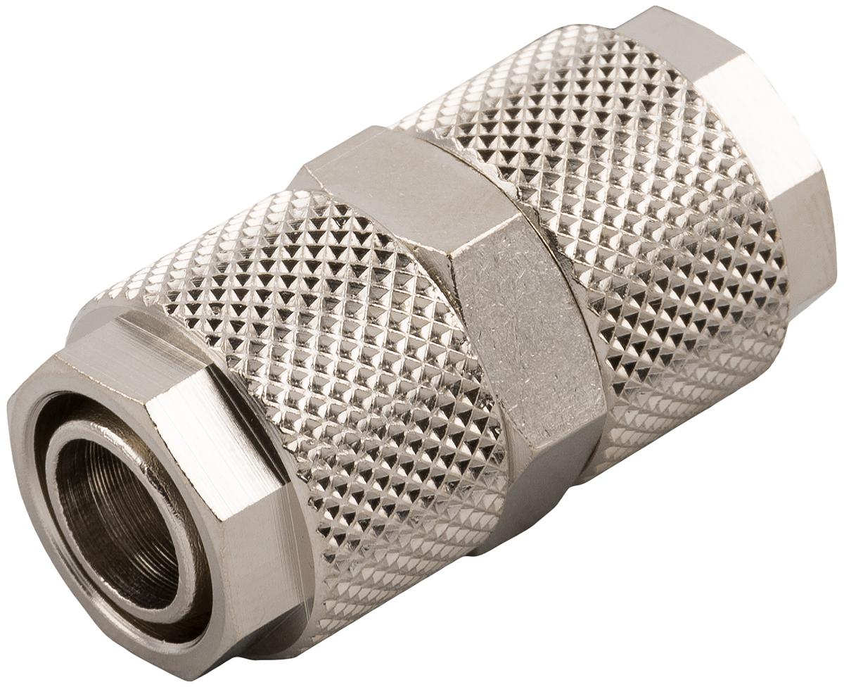 This is EQUAL CONNECTOR 4/27 manufactured by RS Pro. The manufacturer part number is 176-2240. A quality product with a nice nickel plated finish. While the connector B is push in 4 mm. The connector A is push in 4 mm connector. The product has a tube-to-tube style. The product's body is nicely designed from brass materials. The pneumatic fitting is a push-in fitting.