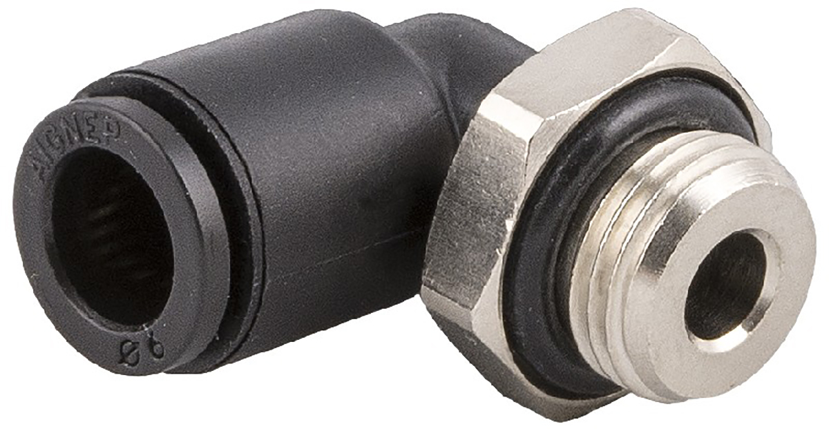 This is SWIVEL MALE ELBOW - BSPP 4-1/8 manufactured by RS Pro. The manufacturer part number is 176-1413. It has a 90° angle . The product complies with all safety standards, such as 1907/2006 (reach), iso 14743:2004, ped 2014/68/ue. It features 20 bar maximum operating pressure. While the connector B is push in 4 mm. The connector A is r 1/8 male connector. Moreover, its thread is made up of brass material . The product has a threaded-to-tube style. The threaded connection is r 1/8 male. Whereas, the minimum operating temperature of the product is -20°c. The pneumatic fitting is a push-in fitting. It has a maximum operating temperature of +80°c. It includes a swivel connection .