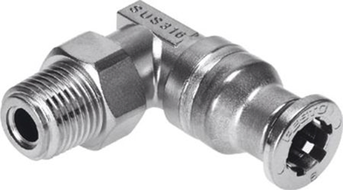 This is Pneumatic Elbow Threaded Adapter R 1/8 Male x R 1/8 Male Male manufactured by Festo. The manufacturer part number is CRQSL-1/8-8. While the connector B is push in 8 mm. The connector A is r 1/8 male connector. While it has 162873 of model number. The product has a threaded-to-tube style. The product has a crqsl manufacturer series. The pneumatic fitting is a elbow threaded-totube adaptor.