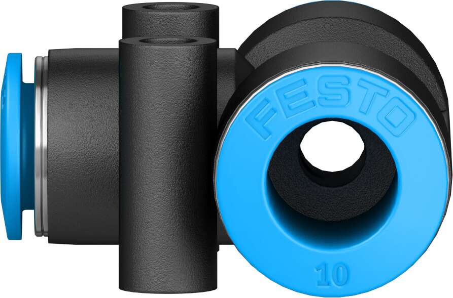 This is push-in T-connector manufactured by Festo. The manufacturer part number is QST-10-8-50. The connector A is push in 10 mm connector. While the connector B is push in 8 mm. It is designed for food grade no . While it has 130822 of model number. The product has a tube-to-tube style. The product's body is nicely designed from pbt materials. The product has a qst-10-8-50 manufacturer series. It is resistant to chemical no . The pneumatic fitting is a tee tube-to-tube adaptor.