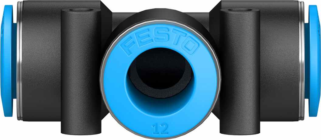 This is push-in T-connector manufactured by Festo. The manufacturer part number is QST-12-20. The connector A is push in 12 mm connector. It has a 90° angle . The product complies with all safety standards, such as rohs compliant. It features 6 bar maximum operating pressure. While the connector B is push in 12 mm. It is designed for food grade no . While it has 130806 of model number. The product has a tube-to-tube style. The product's body is nicely designed from pbt materials. The product has a qst-12-20 manufacturer series. Whereas, the minimum operating temperature of the product is -10°c. It is resistant to chemical no . The pneumatic fitting is a tee tube-to-tube adaptor. It has a maximum operating temperature of +80°c.
