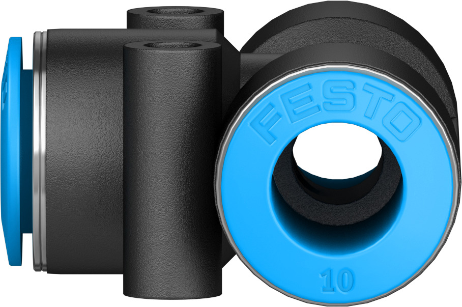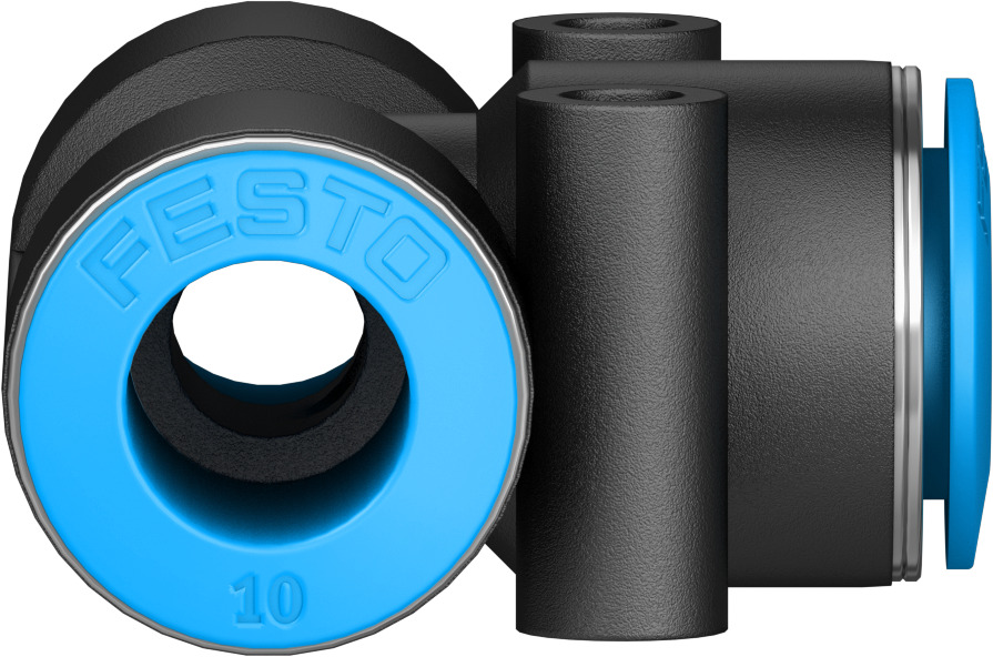 This is push-in T-connector manufactured by Festo. The manufacturer part number is QST-10-50. The connector A is push in 10 mm connector. While the connector B is push in 10 mm. It is designed for food grade no . While it has 130805 of model number. The product has a tube-to-tube style. The product's body is nicely designed from pbt materials. The product has a qst-10-50 manufacturer series. It is resistant to chemical no . The pneumatic fitting is a tee tube-to-tube adaptor.