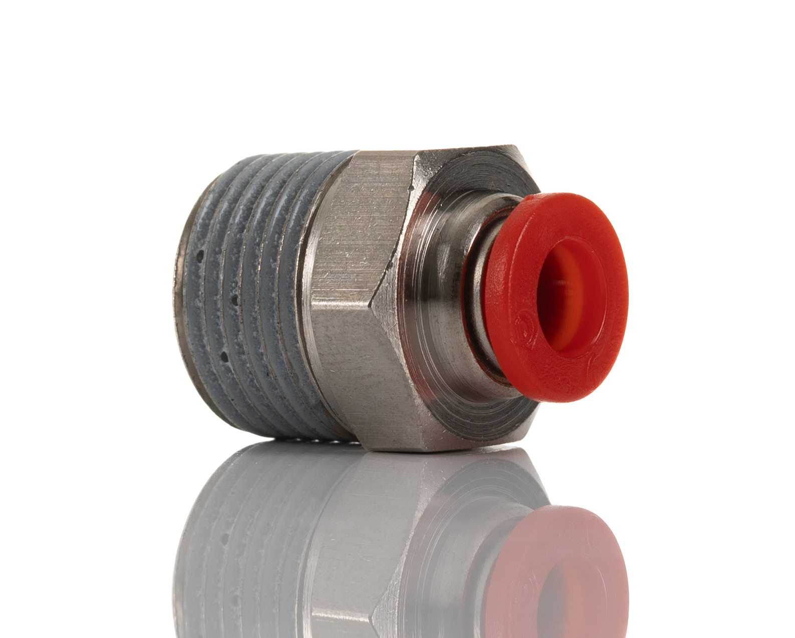 This is PNEUFIT Series Threaded-to-Tube Push In 6 mm to R 3/8 Threaded-to-Tube Connection Style manufactured by Norgren. The manufacturer part number is C01250638. It includes 1 inlet ports . The pneumatic fitting is a threaded-to-tube. A quality product with a nice nickel plated finish. It has a straight angle . It features 10 bar maximum operating pressure. The product is available in inline configuration. Moreover, it has a standard r 3/8 outlet port . While the connector B is r 3/8. The connector A is push in 6 mm connector. Moreover, its thread is made up of nickel plated brass material . The threaded connection is r 3/8 male. The product has a threaded-to-tube style. The product's body is nicely designed from nickel plated brass materials. It has a standard push in 6 mm inlet port . The product has a pneufit manufacturer series. Whereas, the minimum operating temperature of the product is -20°c. It is resistant to chemical no . In addition, the number of outlet ports included is/are 1 . It has a maximum operating temperature of +60°c.