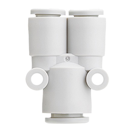 This is KQ2 Series Union Y Push In 16 mm to Push In 12 mm Tube-to-Tube Connection Style manufactured by SMC. The manufacturer part number is KQ2U12-16A. While the connector B is push in 12 mm. The connector A is push in 16 mm connector. The pneumatic fitting is a union y. The product has a kq2 manufacturer series. The product has a tube-to-tube style.