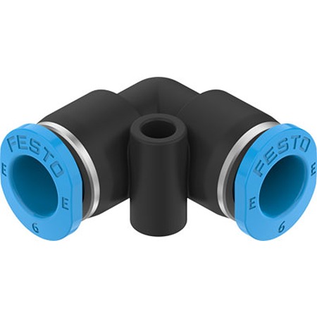 This is NPQE-L Series Elbow Tube-toTube Adaptor Push In 6 mm to Push In 6 mm Push-in Connection Style manufactured by Festo. The manufacturer part number is NPQE-L-Q6-E-F1A-P10. While the connector B is push in 6 mm. The connector A is push in 6 mm connector. While it has npqe-l-q6-e-f1a-p10 of model number. The pneumatic fitting is a elbow tube-totube adaptor. The product has a npqe-l manufacturer series. The product has a push-in style.