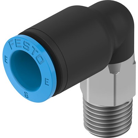 This is NPQE-L Series Push-in Fitting Push In 8 mm to Push In 8 mm Threaded-to-Tube Connection Style manufactured by Festo. The manufacturer part number is NPQE-L-R18-Q8-F1A-P10. While the connector B is push in 8 mm. The connector A is push in 8 mm connector. While it has npqe-l-r18-q8-f1a-p10 of model number. The product has a threaded-to-tube style. The threaded connection is r 1/8. The product has a npqe-l manufacturer series. The pneumatic fitting is a push-in fitting.