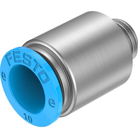 This is NPQE-DK Series Push-in Fitting G 1/8 to Push In 10 mm Threaded Connection Style manufactured by Festo. The manufacturer part number is NPQE-DK-G18-Q10-F1A-P10. While the connector B is push in 10 mm. The connector A is g 1/8 connector. While it has npqe-dk-g18-q10-f1a-p10 of model number. The product has a threaded style. The threaded connection is g 1/8. The product has a npqe-dk manufacturer series. The pneumatic fitting is a push-in fitting.