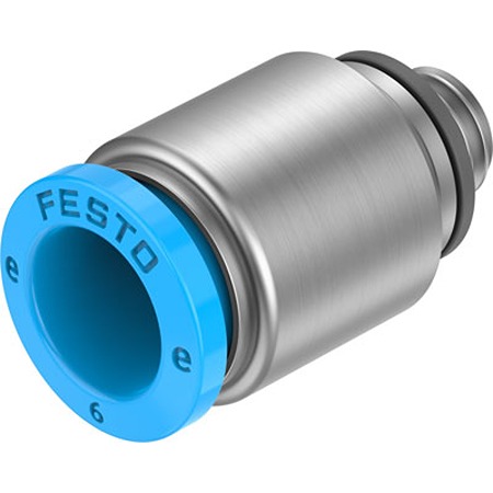 This is NPQE-DK Series Push-in Fitting M5 to Push In 6 mm Threaded Connection Style manufactured by Festo. The manufacturer part number is NPQE-DK-M5-Q6-F1A-P10. While the connector B is push in 6 mm. The connector A is m5 connector. While it has npqe-dk-m5-q6-f1a-p10 of model number. The product has a threaded style. The threaded connection is m5. The product has a npqe-dk manufacturer series. The pneumatic fitting is a push-in fitting.