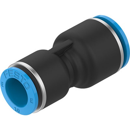 This is NPQE-D Series Push-in Fitting Push In 12 mm to Push In 10 mm Tube-to-Tube Connection Style manufactured by Festo. The manufacturer part number is NPQE-D-Q12-Q10-F1A-P10. While the connector B is push in 10 mm. The connector A is push in 12 mm connector. While it has npqe-d-q12-q10-f1a-p10 of model number. The pneumatic fitting is a push-in fitting. The product has a npqe-d manufacturer series. The product has a tube-to-tube style.