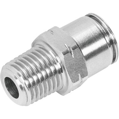 This is CRQS Series Push-in Fitting NPTF 1/4 Male to 5/16 in Threaded-to-Tube Connection Style 565321 manufactured by Festo. The manufacturer part number is CRQS-1/4-5/16-U. While the connector B is 5/16 in. The connector A is nptf 1/4 male connector. While it has 565321 of model number. The product has a threaded-to-tube style. The threaded connection is 1/4 in male. The product has a crqs manufacturer series. The pneumatic fitting is a push-in fitting.