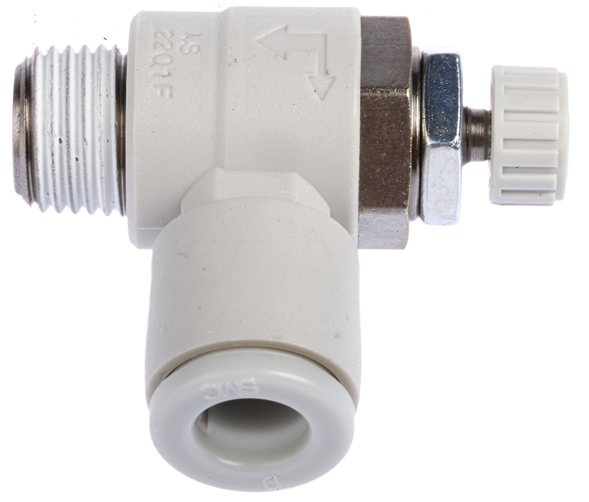 This is AS series Speed Controller R 1/8 Male Inlet Port x R 1/8 Male Outlet Port x 6mm Tube Outlet Port manufactured by SMC. The manufacturer part number is AS2201F-01-06S. It has a maximum 1mpa outlet pressure . The product has a threaded inlet of 1/8 in thread size . Moreover, it has a standard tube outlet port about 6mm . It has a/an r 1/8 male threaded outlet port . It comes in speed controller configuration. In addition, its threaded outlet is of r thread standard . The product has a minimum 0.1mpa outlet pressure . It has a threaded type inlet port . In addition, it has a threaded outlet about 1/8 in thread size . It has a threaded inlet of r thread standard . Moreover, it has a threaded inlet thread of male gender . The product has a as manufacturer series. It has a threaded outlet of male thread gender . It has a/an r 1/8 male threaded inlet port . It is designed with a threaded, tube type outlet port .