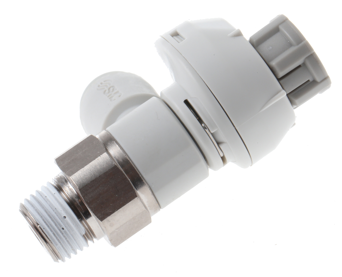 This is AS Series Speed Controller R 1/8 Male Inlet Port x 6mm Tube Outlet Port manufactured by SMC. The manufacturer part number is AS2201FS-01-06S. It has a maximum 1mpa outlet pressure . The product has a threaded inlet of 1/8 thread size . Moreover, it has a standard tube outlet port about 6mm . It comes in speed controller configuration. The product has a minimum 0.1mpa outlet pressure . It has a threaded type inlet port . It has a threaded inlet of r thread standard . Moreover, it has a threaded inlet thread of male gender . The product has a as manufacturer series. It has a/an r 1/8 male threaded inlet port . It is designed with a tube type outlet port .