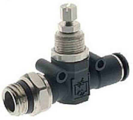 This is 55945 Series Flow Valve 6mm Tube Inlet Port x 1/4 in Male Outlet Port manufactured by RS PRO. The manufacturer part number is 187-5682. It has a maximum 10bar outlet pressure . It has a/an 1/4 in male threaded outlet port . It comes in manual control valve configuration. The product has a minimum 1bar outlet pressure . It has a tube type inlet port . In addition, it has a threaded outlet about 1/4 in thread size . It has about 6mm tube inlet port . The product's body is nicely designed from brass materials. It has a threaded outlet of male thread gender . It is designed with a threaded type outlet port .