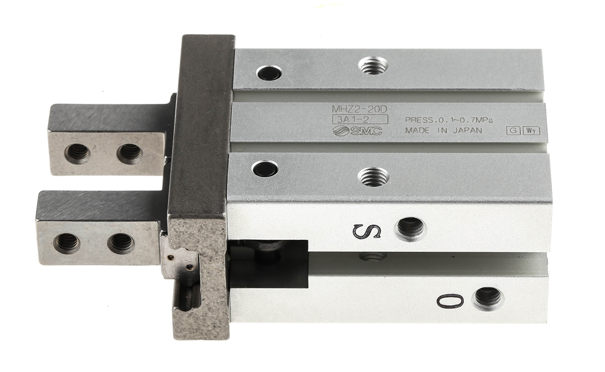 This is 2 Finger Double Action Pneumatic Gripper manufactured by SMC. The manufacturer part number is MHZ2-20D. Provides m5 x 0.8 of port connection. It has a/an parallel type gripping . It features 0.7 mpa maximum operating pressure. The typical product's weight is 235g. It has 2 finger(s) . The product has a mhz2 manufacturer series. Concerning its action options, it allows double action.