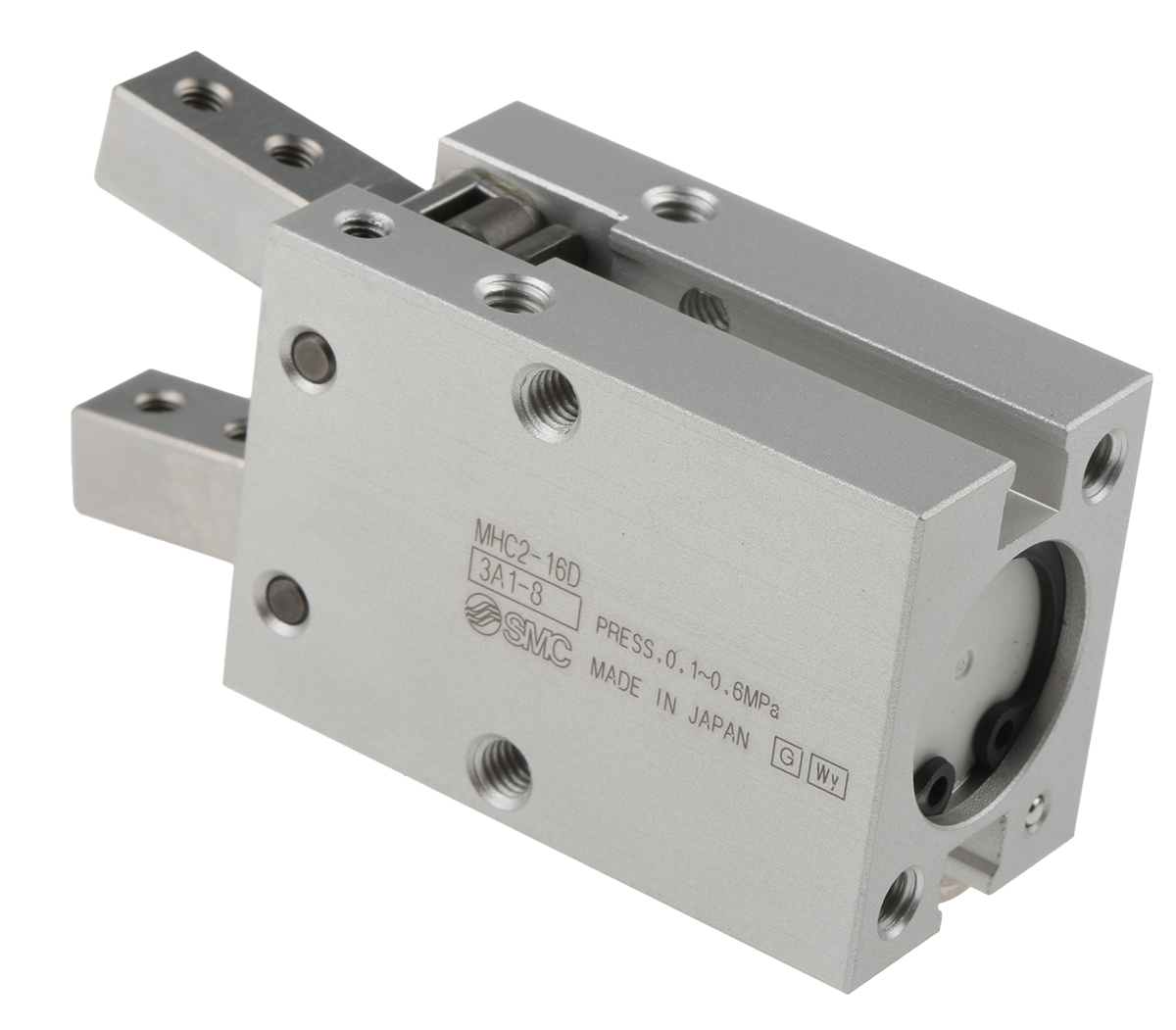 This is 2 Finger Double Action Pneumatic Gripper manufactured by SMC. The manufacturer part number is MHC2-16D. Provides m5 x 0.8 of port connection. It has a/an angle type gripping . It features 0.6 mpa maximum operating pressure. The typical product's weight is 91g. It has 2 finger(s) . The product has a mhc2 manufacturer series. Concerning its action options, it allows double action.