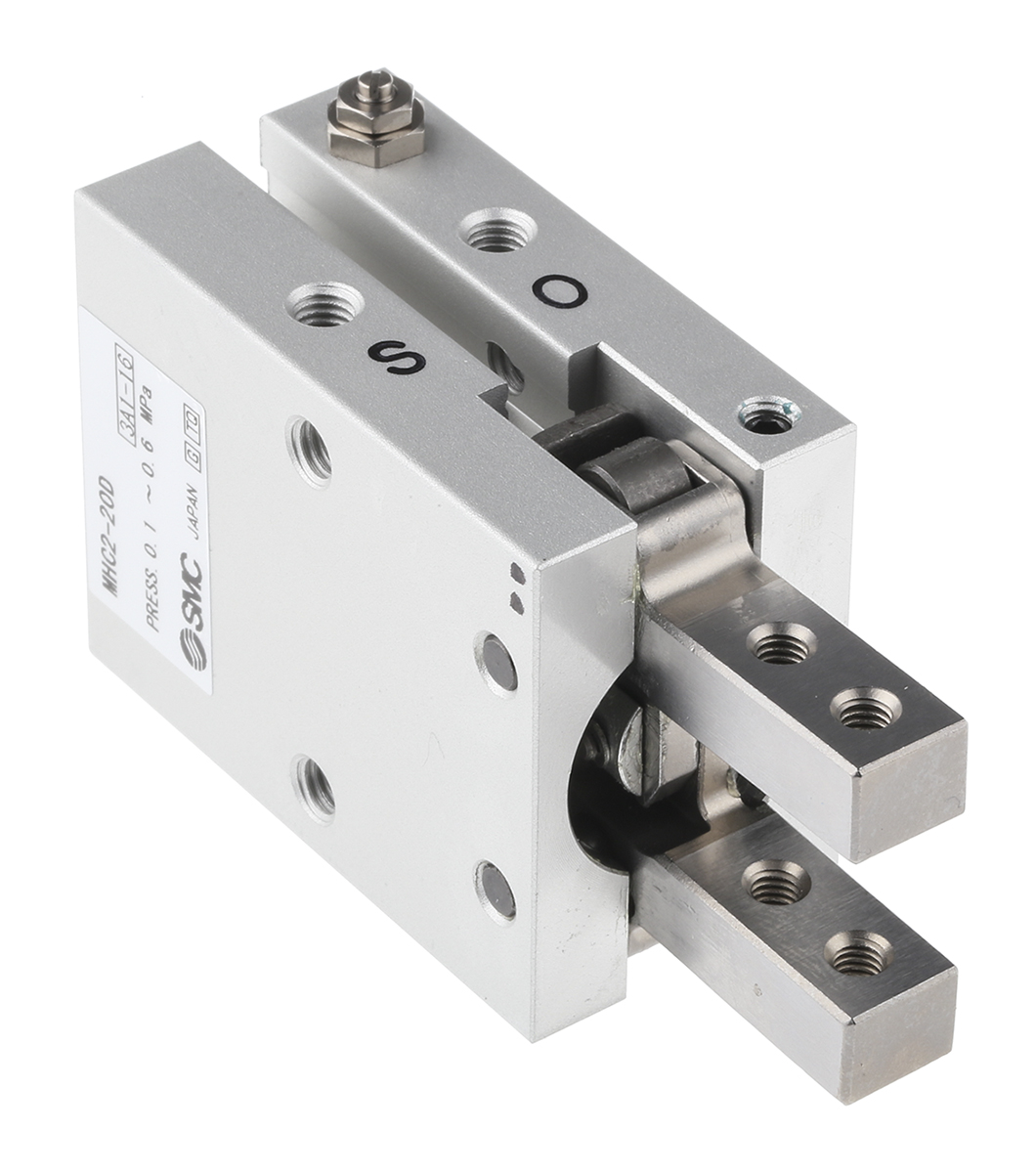 This is 2 Finger Double Action Pneumatic Gripper manufactured by SMC. The manufacturer part number is MHC2-20D. Provides m5 x 0.8 of port connection. It has a/an angle type gripping . It features 0.6 mpa maximum operating pressure. The typical product's weight is 180g. It has 2 finger(s) . The product has a mhc2 manufacturer series. Concerning its action options, it allows double action.