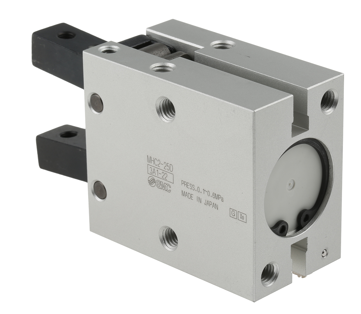 This is 2 Finger Double Action Pneumatic Gripper manufactured by SMC. The manufacturer part number is MHC2-25D. Provides m5 x 0.8 of port connection. It has a/an angle type gripping . It features 0.6 mpa maximum operating pressure. The typical product's weight is 311g. It has 2 finger(s) . The product has a mhc2 manufacturer series. Concerning its action options, it allows double action.