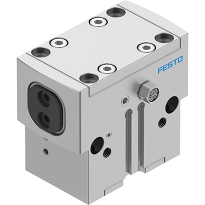 This is 2 Finger Double Action Pneumatic Gripper Parallel Gripping Type manufactured by Festo. The manufacturer part number is HGPD-25-A-G2. It has a/an parallel type gripping . It features 8 bar maximum operating pressure. It has 2 finger(s) . The product has a hgpd manufacturer series. Concerning its action options, it allows double action.