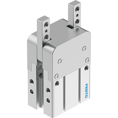 This is 2 Finger Double Action Pneumatic Gripper Angle Gripping Type manufactured by Festo. The manufacturer part number is DHWC-32-A. Concerning its action options, it allows double action. It has a/an angle type gripping . The product has a dhwc-32-a manufacturer series. It features 8 bar maximum operating pressure. It has 2 finger(s) .