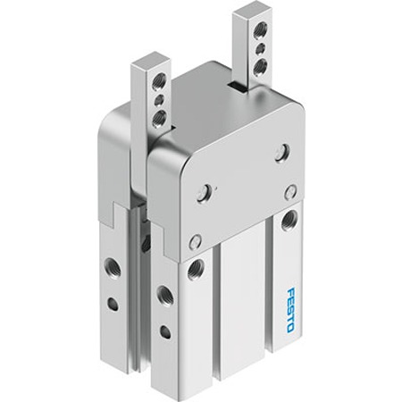 This is 2 Finger Double Action Pneumatic Gripper Angle Gripping Type manufactured by Festo. The manufacturer part number is DHWC-25-A. Concerning its action options, it allows double action. It has a/an angle type gripping . The product has a dhwc-25-a manufacturer series. It features 8 bar maximum operating pressure. It has 2 finger(s) .