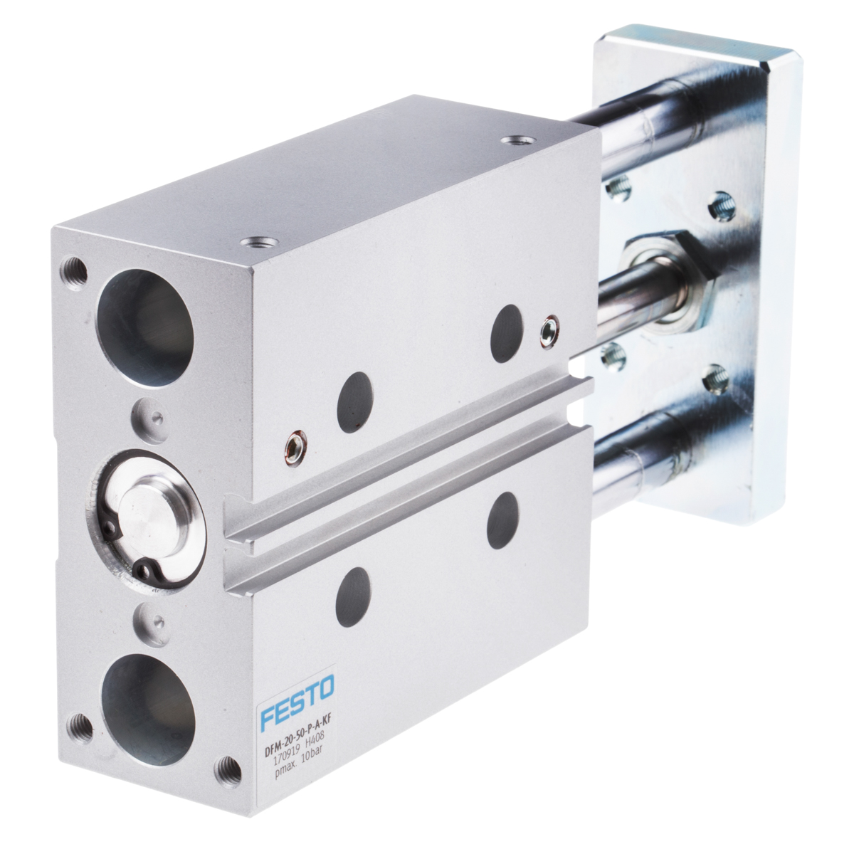 This is Pneumatic Guided Cylinder manufactured by Festo. The manufacturer part number is DFM-20-50-P-A-KF. While the product has supplied with elastomer cushioning. The given dimensions of the product include 131 x 83 x 36mm. The typical product's weight is 1.1kg. While it has 170919 of model number. The stroke is 50mm. In addition, the height is 36mm. Furthermore, the product is 83mm wide. Its accurate length is 131mm. The product has a dfm manufacturer series. Concerning its action options, it allows double action. The bore with 20mm of dimensions. It features 10 bar maximum operating pressure. It has a maximum operating temperature of +60°c. Whereas, the minimum operating temperature of the product is -5°c.