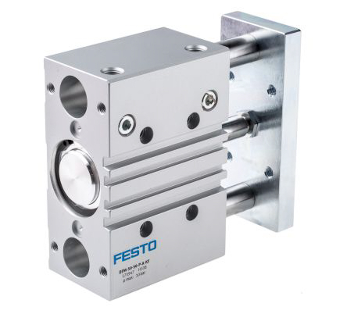 This is Pneumatic Guided Cylinder manufactured by Festo. The manufacturer part number is DFM-50-200-P-A-KF. While the product has supplied with elastomer cushioning. The given dimensions of the product include 334 x 148 x 64mm. The typical product's weight is 8.1kg. While it has 170952 of model number. The stroke is 200mm. In addition, the height is 64mm. Furthermore, the product is 148mm wide. Its accurate length is 334mm. The product has a dfm manufacturer series. Whereas, the minimum operating temperature of the product is -5°c. Concerning its action options, it allows double action. The bore with 50mm of dimensions. It features 10 bar maximum operating pressure. It has a maximum operating temperature of +60°c.