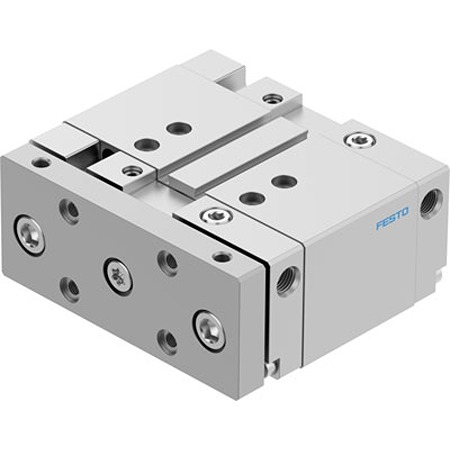 This is Pneumatic Guided Cylinder - 50mm Bore 25mm Stroke DFM Series Double Acting manufactured by Festo. The manufacturer part number is DFM-50-25-B-PPV-A-KF. While it has dfm-50-25-b-ppv-a-kf of model number. This has integrated with a ball bearing, a bearing with long-lasting features. The stroke is 25mm. The product has a dfm manufacturer series. Concerning its action options, it allows double action. The bore with 50mm of dimensions.