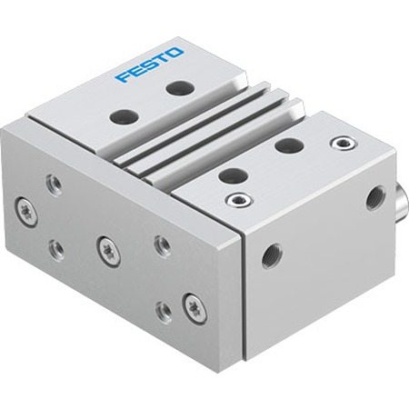 This is Pneumatic Guided Cylinder - 63mm Bore 50mm Stroke DFM Series Double Acting manufactured by Festo. The manufacturer part number is DFM-63-50-P-A-GF-F1A. While it has dfm-63-50-p-a-gf-f1a of model number. This has integrated with a plain bearing, a bearing with long-lasting features. The stroke is 50mm. The product has a dfm manufacturer series. Concerning its action options, it allows double action. The bore with 63mm of dimensions.