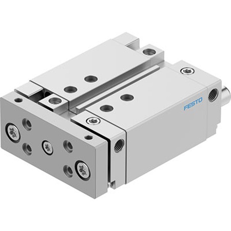 This is Pneumatic Guided Cylinder - 25mm Bore 40mm Stroke DFM Series Double Acting manufactured by Festo. The manufacturer part number is DFM-25-40-B-PPV-A-GF. While it has dfm-25-40-b-ppv-a-gf of model number. This has integrated with a plain bearing, a bearing with long-lasting features. The stroke is 40mm. The product has a dfm manufacturer series. Concerning its action options, it allows double action. The bore with 25mm of dimensions.
