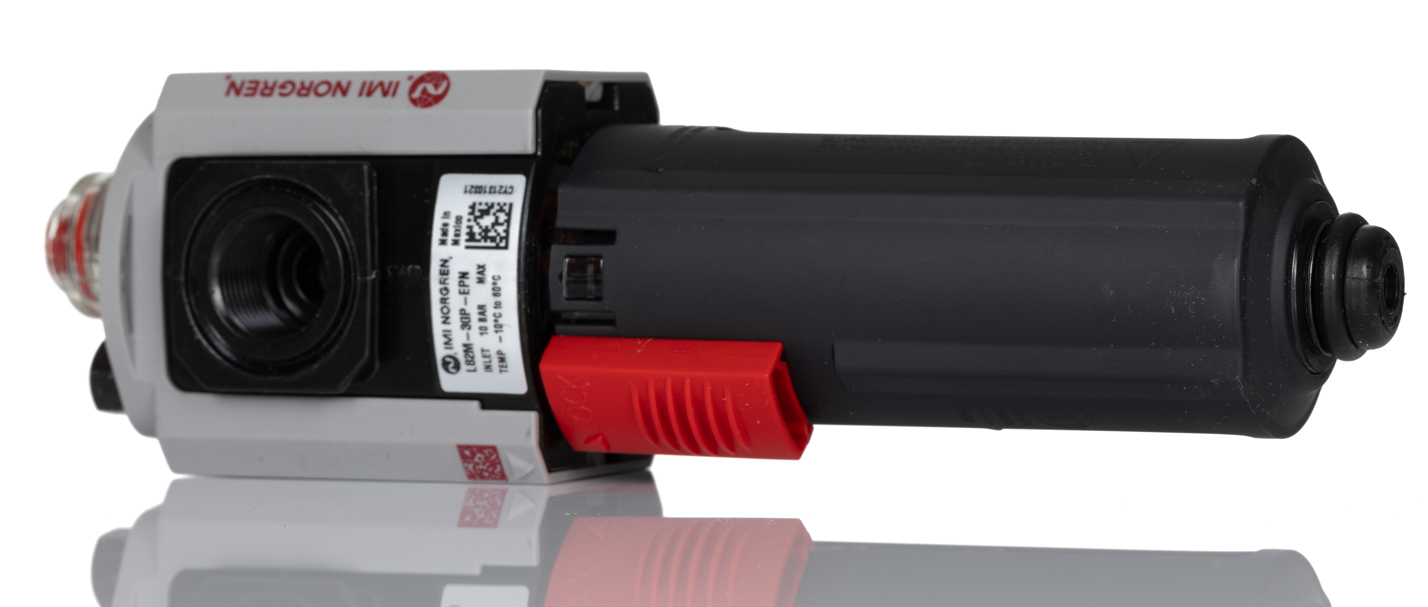 This is G 3/8 Pneumatic Air Lubricator manufactured by IMI Norgren. The manufacturer part number is L82M-3GP-EPN. Provides g 3/8 of port connection. It has a fill under pressure feature yes . It features 10 bar maximum operating pressure. It has a bowl made of polycarbonate material . The product has a excelon plus manufacturer series. Whereas, the minimum operating temperature of the product is -10°c. In addition, it has a port connection of g thread standard . It has a maximum operating temperature of +60°c.