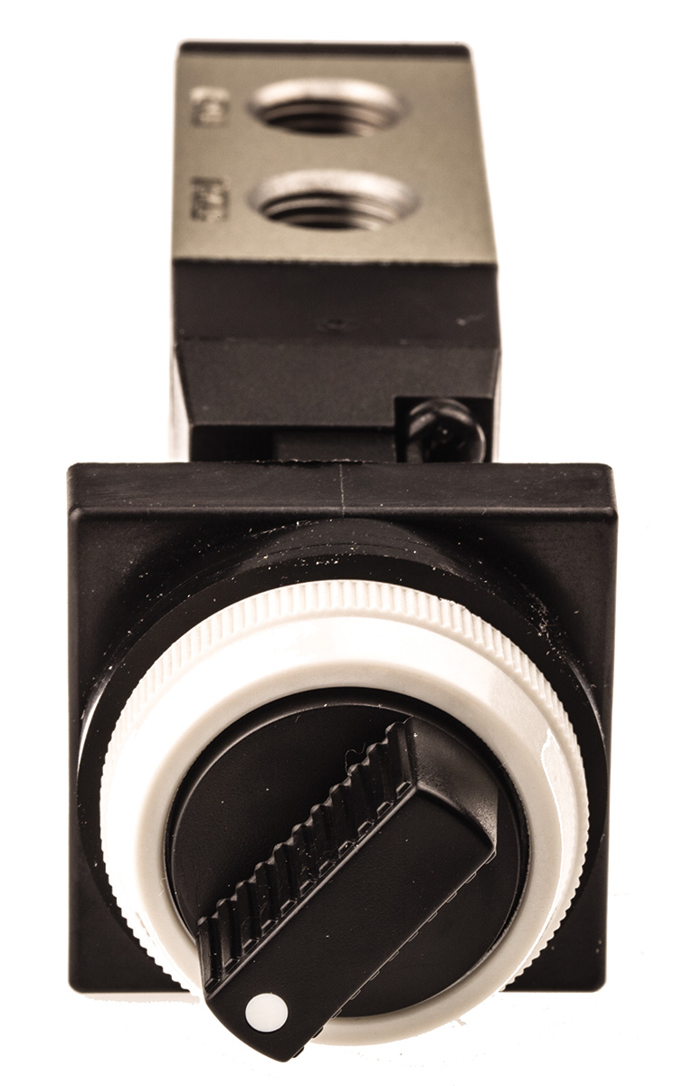 This is Black Twist Selector Pneumatic Manual Control Valve Rc 1/4 Aluminium Alloy 1/4 in Rc -5 → +60°C manufactured by SMC. The manufacturer part number is VFM350-02-34B. It has a black control button/switch colour . It features 0.9 mpa maximum operating pressure. This product features 5 number of ports. The product vfm300, is a highly preferred choice for users. The product's body is nicely designed from aluminium alloy materials. It has a model number iii b. In addition, the height is 140.2mm. The product provides up to 982nl/min maximum flow rate. Furthermore, the product is 26.4 mm wide. Its accurate length is 35mm. Whereas, the minimum operating temperature of the product is 60°c. It is created with a twist selector control mechanism . It has a standard 1/4 in port size. pneumatic manual control valve is a versatile product designed to provide user-defined applications. It has a maximum operating temperature of 60°c.