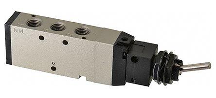 This is Roller Lever Pneumatic Manual Control Valve NPT 1/4 ADC 1/4 NPT -5 → +60°C manufactured by SMC. The manufacturer part number is NVFM250-N02-01. It performs basic function of 4/2. It features 1 mpa maximum operating pressure. The threaded is a npt standard. It also features npt 1/4 connection port thread. It has a typical thread size of 1/4. This product features 4/2 number of ports. The product's body is nicely designed from adc materials. The product has a vfm200 manufacturer series. Whereas, the minimum operating temperature of the product is -5°c. It is created with a roller lever control mechanism . It has a maximum operating temperature of +60°c.