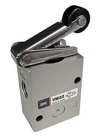 The VM230-02-01A is a roller lever pneumatic manual control valve featuring Rc 1/4 connections for efficient airflow control. Designed for durability, it operates smoothly within a -5 to +60°C temperature range.