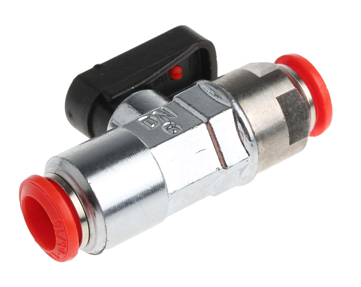 This is PUSH IN CONNECTION BALL VALVE 8MM manufactured by RS Pro. The manufacturer part number is 176-2146. It has a red control button/switch colour . It features 20 bar maximum operating pressure. It also features push in 8 mm connection port thread. This product features 2 number of ports. The product's body is nicely designed from brass materials. Whereas, the minimum operating temperature of the product is -20°c. It is created with a handle control mechanism . It has a maximum operating temperature of +80°c.