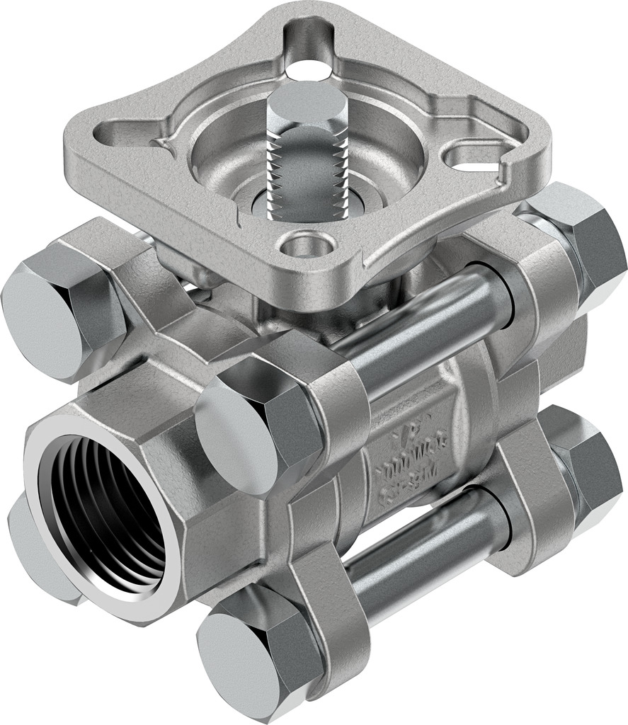 This is ball valv manufactured by Festo. The manufacturer part number is VZBE-1/2-T-63-T-2-F0304-V15V15. It performs basic function of 2/2. It features 8bar maximum operating pressure. The threaded is a npt standard. It also features npt 1/2 connection port thread. While it has 4809117 of model number. It has a typical thread size of 1/2in. The product provides up to 533.33l/min maximum flow rate. The product's body is nicely designed from stainless steel materials. The product has a vzbe manufacturer series. Whereas, the minimum operating temperature of the product is -5°c. It is created with a rod lever control mechanism . It has a maximum operating temperature of +50°c.