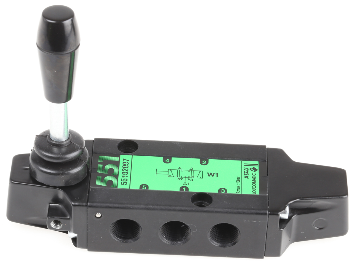 This is Lever 5/3 W1 Pneumatic Manual Control Valve 551 Series manufactured by EMERSON – ASCO. The manufacturer part number is 55102097. It performs basic function of 5/3 w1. It features 10 bars maximum operating pressure. The product provides up to 760l/min maximum flow rate. The threaded is a g standard. It also features g 1/4 connection port thread. It has a typical thread size of 1/4in. This product features 5/3 number of ports. The product's body is nicely designed from aluminium materials. The product has a 551 manufacturer series. Whereas, the minimum operating temperature of the product is -25°c. It is created with a lever control mechanism . It has a maximum operating temperature of +60°c.