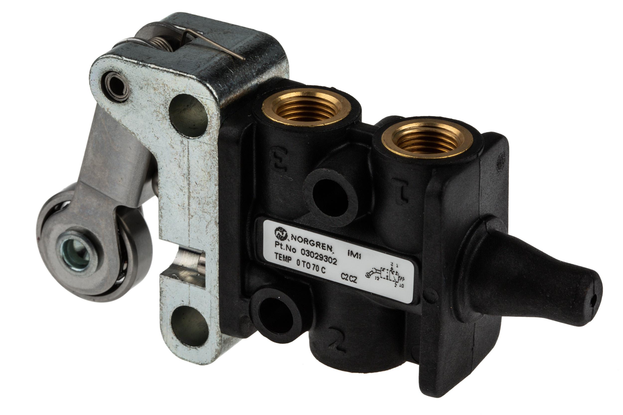 This is Roller Lever 3/2 Mechanical Valve 302 Series G 1/8 1/8 III B manufactured by Norgren. The manufacturer part number is 03029302. It performs basic function of 3/2. It features 10 bar maximum operating pressure. The threaded is a g standard. It also features g 1/8 connection port thread. It has a typical thread size of 1/8. The product's body is nicely designed from pa materials. The product has a 302 manufacturer series. Whereas, the minimum operating temperature of the product is 0°c. It is created with a roller lever control mechanism . It has a maximum operating temperature of +70°c.
