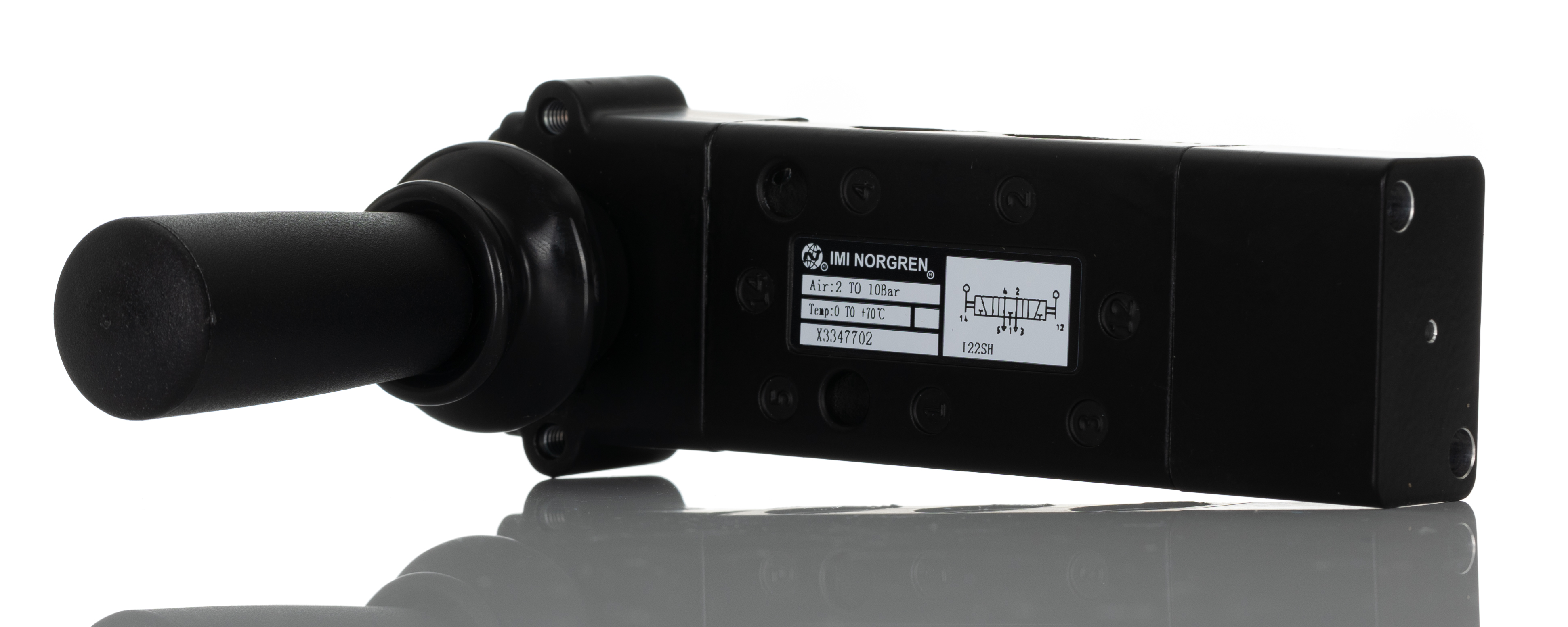 This is Lever 5/3 Mechanical Valve X334 Series G 1/8 1/8in X33 manufactured by Norgren. The manufacturer part number is X3347702. It performs basic function of 5/3. It has a black control button/switch colour . It features 10 bar maximum operating pressure. The product provides up to 335l/min maximum flow rate. The threaded is a g standard. It also features g 1/8 connection port thread. While it has x33 of model number. It has a typical thread size of 1/8in. This product features 5 number of ports. The product's body is nicely designed from zinc materials. The product has a x334 manufacturer series. Whereas, the minimum operating temperature of the product is 0°c. It is created with a lever control mechanism . It has a maximum operating temperature of +70°c.
