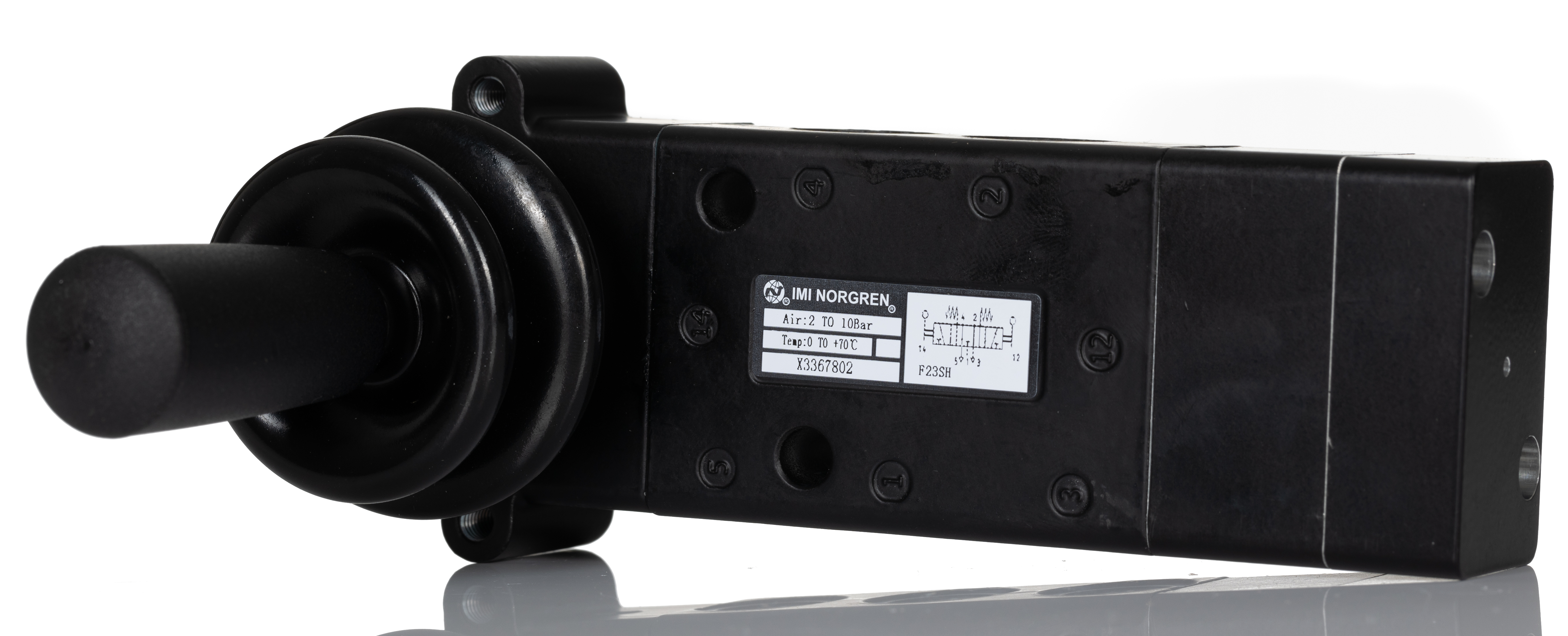 This is Lever 5/3 Mechanical Valve X336 Series G 1/4 1/4 3367802 manufactured by Norgren. The manufacturer part number is X3367802. It performs basic function of 5/3. It has a black control button/switch colour . It features 10 bar maximum operating pressure. The threaded is a g standard. It also features g 1/4 connection port thread. While it has 3367802 of model number. It has a typical thread size of 1/4. The product provides up to 965l/min maximum flow rate. The product's body is nicely designed from zinc materials. The product has a x336 manufacturer series. Whereas, the minimum operating temperature of the product is 0°c. It is created with a lever control mechanism . It has a maximum operating temperature of +70°c.
