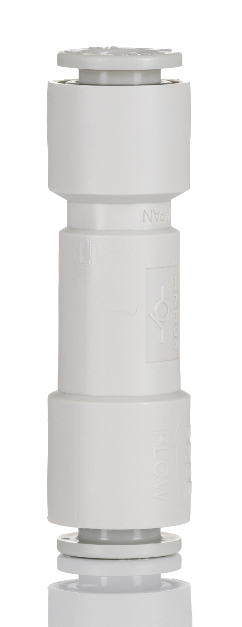 This is AKH Non Return Valve 8mm Tube 8mm Tube -100 kPa → 1 MPa manufactured by SMC. The manufacturer part number is AKH08-00. Additionally, the product has a tube type inlet connection . It features 1 mpa maximum operating pressure. It has a standard 8mm tube inlet connection . It has a minimum -100kpa operating pressure . It has a standard 8mm tube outlet connection . It has a cracking pressure about 0.005mpa . It has a tube type outlet connection . It has an operating pressure range of -100 kpa → 1 mpa . It has a maximum operating temperature of +60°c. Whereas, the minimum operating temperature of the product is -5°c. The product has a akh manufacturer series.